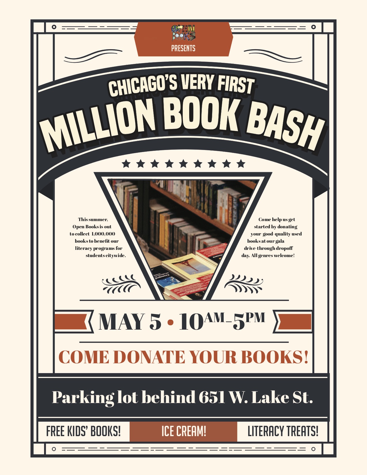 Kick Off Event for the Million Book Bash. Calling on Chicago to donate 1,000,000 books this summer to support our Literacy and Book Granting Programs! On May 5th from 10am-5pm, we’ll help unload your car, give you some FREE KIDS BOOKS and FREE ICE CREAM! And Literacy Games!