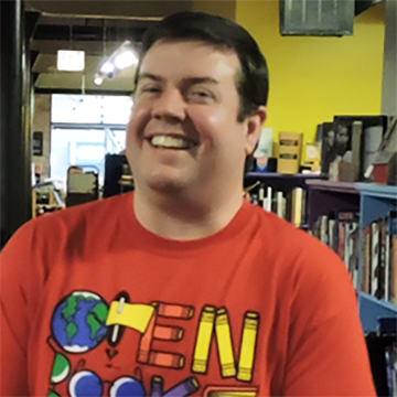 Jeremy started his career at Open Books in 2012 as a volunteer at the Open Books Store at its orginal location in River North. He became a staff member in 2015 and has since worked at the warehouse in Pilsen. He is thrilled to have a job where he can spend his days with books and forward the cause of literacy. When he is not at work he is either reading science fiction or spending time with his family, including his dog Empanada.