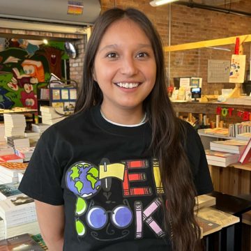 Tate Broberg, originally from the Black Hills of South Dakota, joined Open Books in 2023. Tate possesses a strong focus on inclusive education and youth engagement. With a background in Youth Mentorship and After-school Education from her time working at RCITY Community Development Center in Humboldt Park, she thoroughly enjoys packing boxes of free books for educators in southwest Chicago. First joining Open Books as a Warehouse Coordinator, she now oversees Classroom Granting, curating inventory from book donations, and committing her energy towards improving DEAI initiatives and inclusive representation. Outside of work, she enjoys reading, writing poetry and music, supporting queer and trans artists, and exploring the cutest of vintage stores.